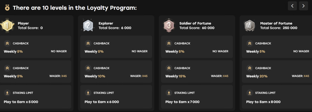 Tryggðarkerfið okkar er byggt upp á 10 skýrum stigum, þar sem hreyfing frá einu stigi til annars er gagnsæ og byggist á raunverulegum veðmálum þínum. Við höfum hætt með flókin stigakerfi og skipt þeim út fyrir kerfi sem metur hverja hreyfingu sem þú gerir á pallinum.
